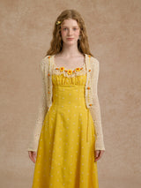波状のレースプラケットは、結んだりプリーツにしたりすることで、つぼみのようなシルエットを演出できます。