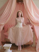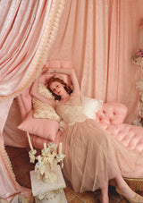 • The lace at the hem is hand-sewn with polka dot pearls, giving it a retro and sophisticated look.
