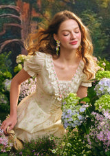 • ヴィンテージレースのトリム:ステンドレースがネックラインとヘムラインを飾り、繊細でデリケート、ヴィンテージでエレガント、ティーブレイクドレスのフレンチスタイルを加える。