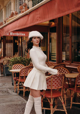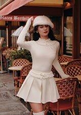• リボン付きのレースハイネックでクラシックな魅力を演出