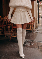 レーストリムのディテールがフェミニンでクラシカルな印象をプラス